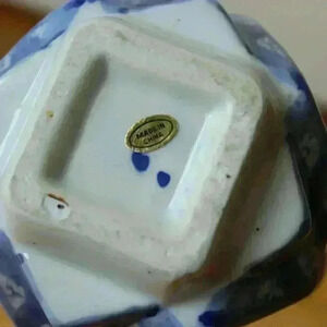 ● Blue and White Decorative Chinoiserie Teapot, Hand Painted Hexagon Shaped Asian Style Lidded Teapot