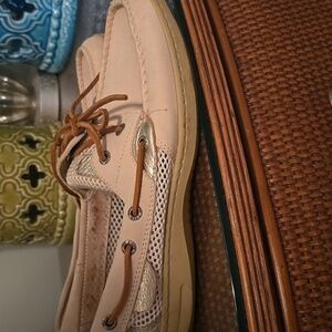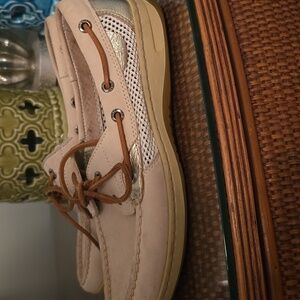 Womens Sperry Top Siders Beige Boat Shoes with A Gold Accent Size 8 (Bin1)