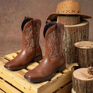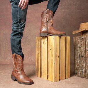 Square Toe:These western boots men feature a square toe design, which is not only classic and stylish but also provides more space for the front part of your feet from an anatomical perspective. This means your feet won't feel cramped.