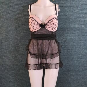 Victoria's Secret Blue & Black Denim & PU Lightweight Tote Bag
