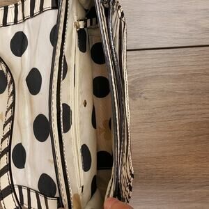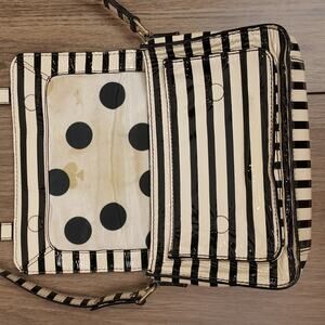 Kate Spade striped crossbody purse. Some staining damage from something pink. Pictured. Metal clasps