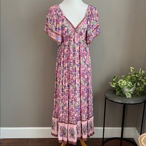 In loom Floral Pink Maxi Dress Medium Bump Friendly