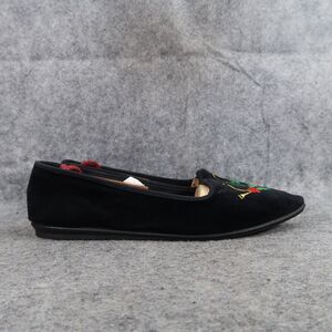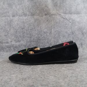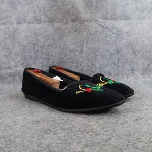 Used New York Lites Shoes Womens 8 Slippers Velvet Embroidered Horn Holly Black Flats