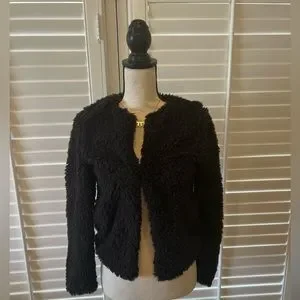 H&M fuzzy little jacket. Light, but fluffy. Slight shimmer in the fabric.