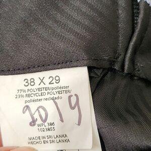 The Haggar Dress Pants for Men in size 38x29 in Blue Navy feature a flat front design, making them a stylish and sophisticated choice for any dressy occasion.