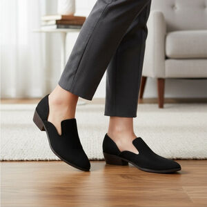 The Lucky Brand Modern Slip On Western Oxford Loafers Moccasins are a stylish and versatile choice for women. With a pointed toe and slip-on closure, these moccasins feature a solid pattern and are made of faux leather. These trendy loafers are suitable for all seasons they are perfect for adding a touch of western flair to any outfit.