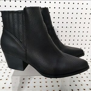 Excellent Condition Pre-owned, Black Heel Ankle Boots with Strap Buckle Accent lightweight Comfort Long-term Cushioning Breathable. Size 8 Wide. Mid Heel Height 2 1/4”. Zip up Closure Shaft height 5”. Boots have Some Versions a Snake Print Accent And Boots with Elastic Gusseting for Extra Comfort & Flexibility