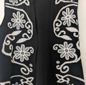 Lauren Michelle Black/White Floral Vest Cardigan sz L Minimalist Officewear
