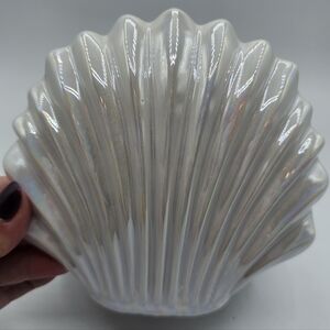 Bath & Body Works White Iridescent Clamshell Candle Holder