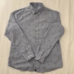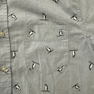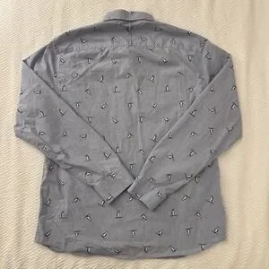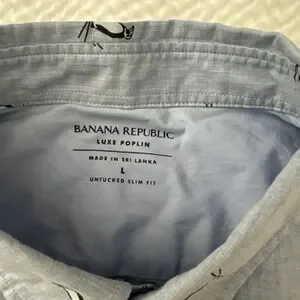 Penguin Skiing Banana Republic Luxe Poplin Shirt Mens Large Blue Untucked Slim