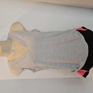 Color gray. Great used condition. Raicer back with ties on the side. Great for exercising or to stay cool in this hot summer weather