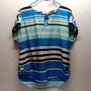 Calvin Klein Women’s Blouse Large Lightweight Striped Short Sleeve With Roll Tab