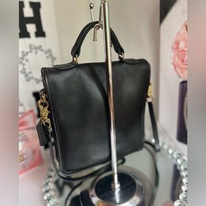 This Coach crossbody bag in black leather exudes timeless elegance with its vintage-inspired design. Featuring a structured silhouette and a versatile crossbody strap, it offers both style and functionality for any occasion. The smooth matte finish adds a touch of sophistication to this classic accessory.
