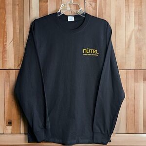 Elevate your casual wardrobe with this unique NÜTRL Vodka Seltzer long-sleeved black tee by Port & Company, size Medium. Featuring the iconic NÜTRL Vodka Seltzer logo, this shirt is perfect for fans of the refreshing, gluten-free beverage made with real vodka and real juice. Crafted from 100% soft spun cotton, it offers comfort and durability.  Approximate measurements: 19” armpit to armpit, 30” sleeves from top of shoulder, 28” length. Ideal for casual outings or lounging at home, this tee combines style and comfort effortlessly.