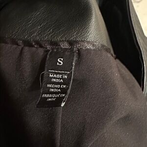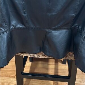 Sleek black leather jacket with quilted design. Features studded accents for a modern touch. Ideal for stylish outings.