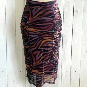 Brand New With Tags Beautiful Cable & Gauge purple black mesh tiger mock neck sleeveless blouse and Skirt Set