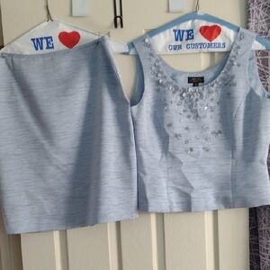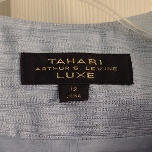 Tahari ASL Luxe Textured Light Blue Jacket With Matching Top And Skirt Size 12