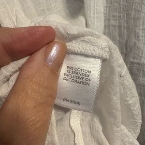 Stylish J Jill 100% cotton white gauze blouse with intricate embroidery. Features a relaxed fit and short sleeves. 28” pit to pit. 27” length.