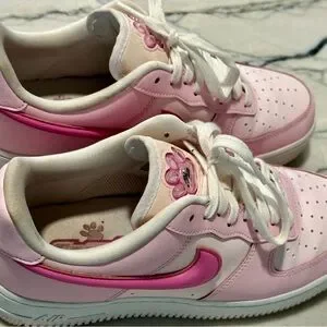Limited edition pink paw-print Air Force One ‘07 LX. Size W9, and fits a little large. Light pink base with vibrant hot pink accents.