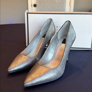 White House Black Market Olivia Metallic Silver Heels | Size 7.5