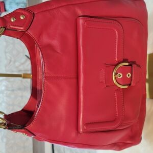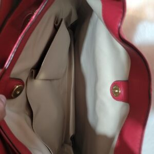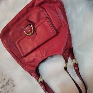 This stylish red leather shoulder bag is perfect for any occasion. Its elegant design and vibrant color make it a standout accessory.