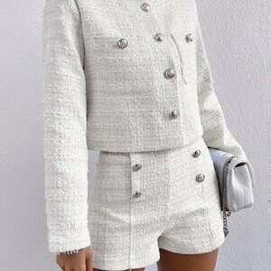 White Casual Womens Plaid Print Button Front Jacket & Shorts