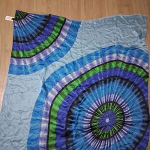 Stylish scarf with artistic blue and green design. Adds elegance to any look.