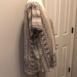 Elevate your wardrobe with this stylish gray patterned Lucky Brand women's top. Perfect for any occasion, this top offers both comfort and elegance. In great condition with no visible or known flaws.