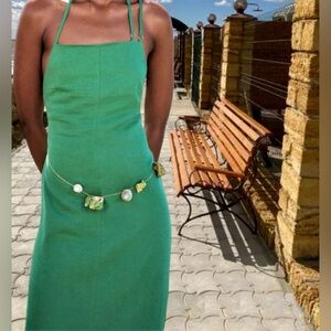 Step out in style with this elegant green sleeveless dress. Perfect for any occasion, this dress offers a sleek and sophisticated look.