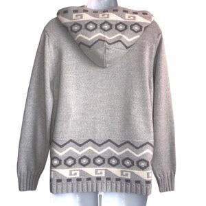 Aztec Tribal Print Gray & White thick full zip hooded sweater est size M in EUC