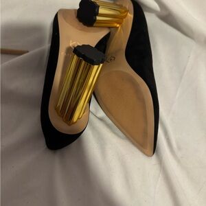 Step out in style with these elegant black pumps from Katy Perry Collections, featuring a striking gold heel.