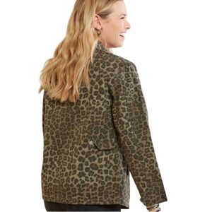 GOOD AMERICAN Leopard Print Cotton Utility Jacket in a Size 0 (XS) NWT BRAND NEW WITH TAGS!!! GOOD AMERICAN Denim / Cotton Oversized 4 front pockets Snap button closure Medium weight Measurements P2P 18” flat across Length 24” You’ll LOVE LOVE LOVE it so so much!!! 8478