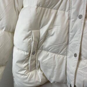 32 Degrees Heat Womens White Hooded Puffer Jacket L With Snap Closures & Pockets