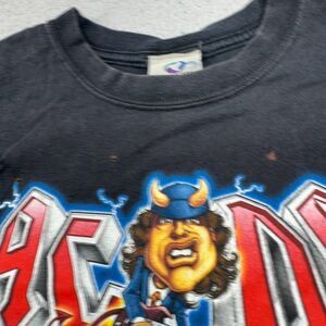 ACDC Shirt Men Large Black Liquid Blue Angus Caricature Devil Horn Rock Band