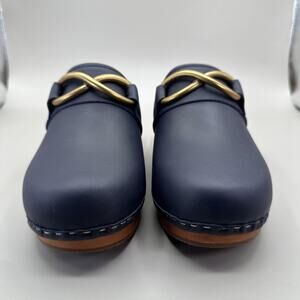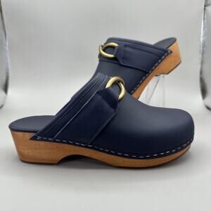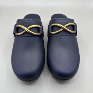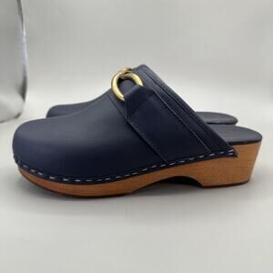 M.GEMI Miriam Clogs Mules Womens Size US 6/EU 36 Navy Calf Leather Made in Italy