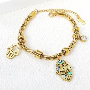 Add some color and elegance to your wrist with this charming bracelet. Featuring a mix of sizes and colors of palm-shaped beads, a round white diamond, and four round through beads, this bracelet is a stylish addition to any outfit. With a length of 16.5+5cm, it's a perfect fit for any wrist.