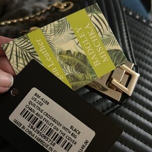 🔥 Beautiful New with tags, Badgley Mischka Black quitted purse with gold chain accents. Shoulder straps convert to use either as a shoulder bag or a crossbody. Vegan Leather.