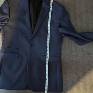Faux outside pockets on jacket. Inside lining features 3 pockets and pink piping.