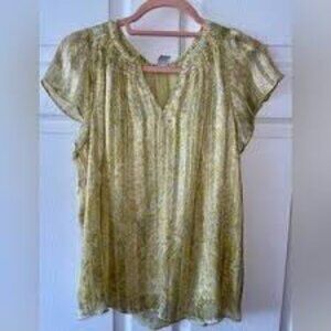 Joie women's v-neck ruffle sleeve paisley metallic blouse yellow size XL
