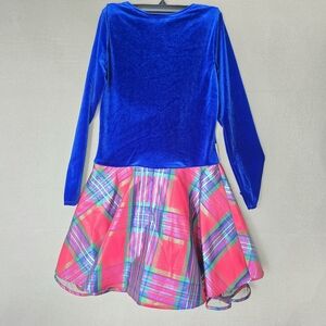 Bonnie Jean holiday Long Sleeved Velvet Bodice to Plaid Skirt Dress 14 Christmas