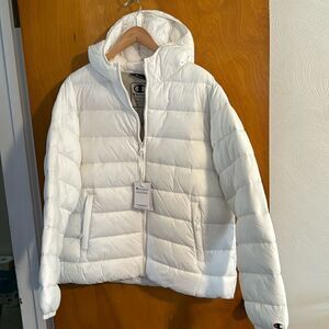 This is new with tags. The color is gray. The lining is 100 % polyester and is quilted along with the sleeves. The fabric content is 92 % polyester, 6 % wool, 2 % other. The collar is corduroy. The chest is 44 inches, 22 flat. The length is 29 inches with 26 inch sleeves.