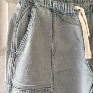 Stylish light blue wide-leg pants with drawstring waist, thicker material NWOT