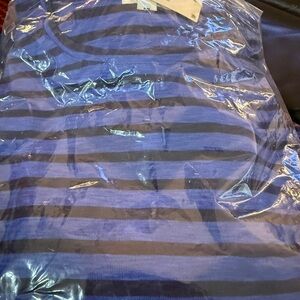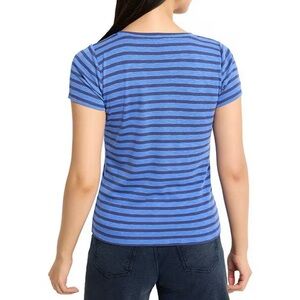 NIC+ZOE Stripe Knit Scoop Neck Short Sleeve Cotton Blend Blue Striped Tee NWT XL