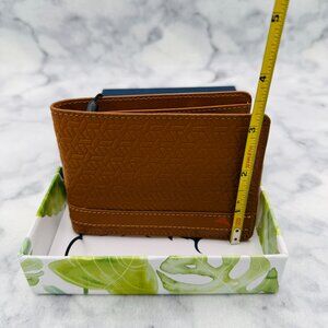 Tommy Bahama Leather Bifold Wallet,Tan Geometric Embossed,Logo Detail,Boxed-NEW