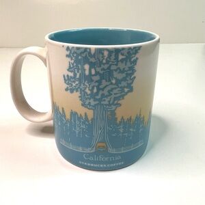 Like new Starbucks mug from California With palm trees, beach and surfer and Redwood Tree. Turquoise color inside. Like new