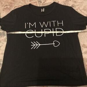 Super cute Fashion Nova Valentine's Day 'I'm with Cupid' black t-shirt in size XL. This trendy tee is made from a comfortable polyester and elastane blend. Perfect for a fun and flirty look this season! Grab it now to spread the love!