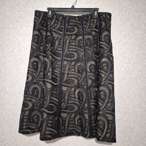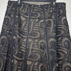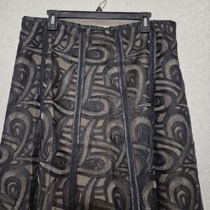 PETER NYGARD Elegant Black-gold Patterned A-Line Skirt..SIZE:16