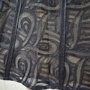 This elegant black skirt features a unique patterned design, perfect for any occasion. Its stylish look makes it a versatile addition to your wardrobe.