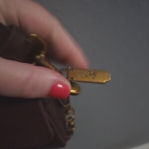 Elegant brown crossbody bag with gold accents. Perfect for any occasion.