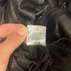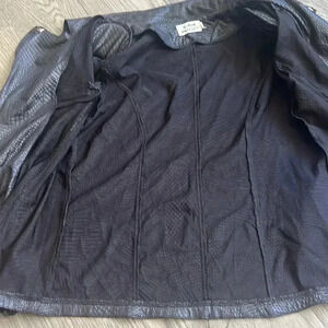 This is a super adorable jacket perfect for spring even summer because it’s so light. It has a very soft and light material not a faux leather jacket material. Very stylish and perfect for any occasion. Says size T1 which is a size 1.